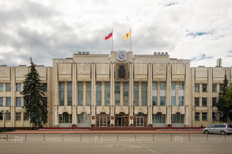 Ярославль, Россия - 14 августа 2020 г.: Здание администрации Ярославской области на Советской площади. Золотое кольцо России
