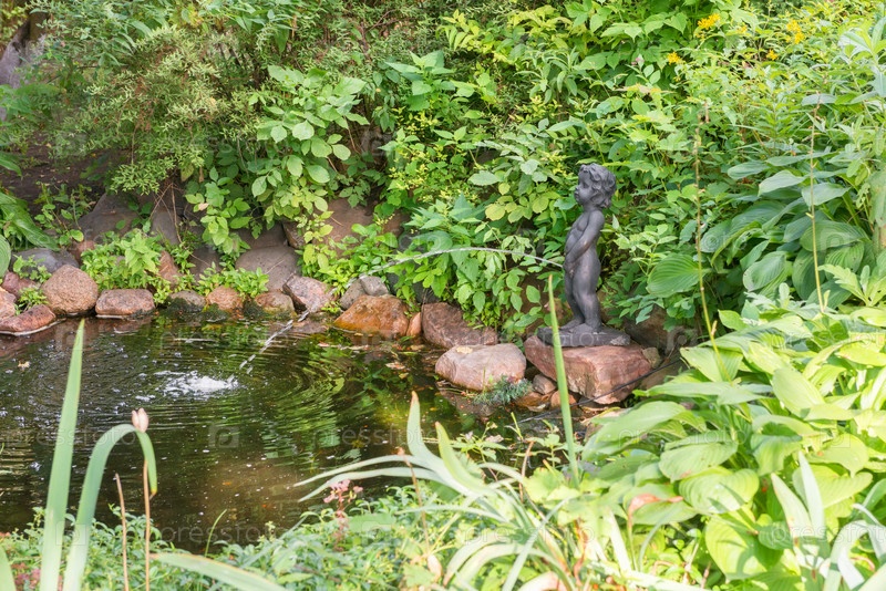 Ярославль, Россия - 14 августа 2020 г.: Маленький мальчик Маннекен писает в пруд в прекрасный летний день