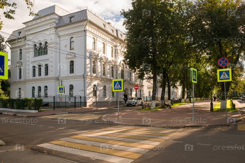 Ярославль, Россия - 14 августа 2020 г.: Вид на улицу Революционную с Волжской набережной летним вечером. золотое кольцо России