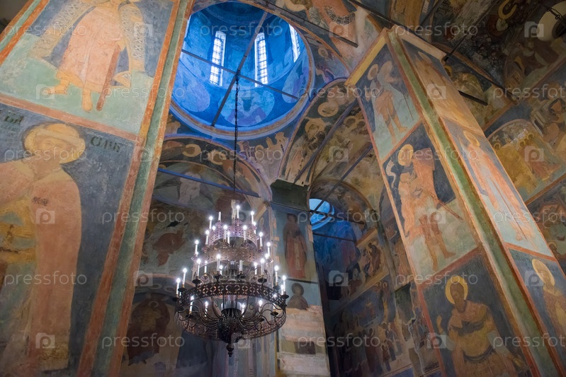 Детали интерьера Спасо-Преображенского собора с фресками. Спасо-Преображенский монастырь в Ярославле