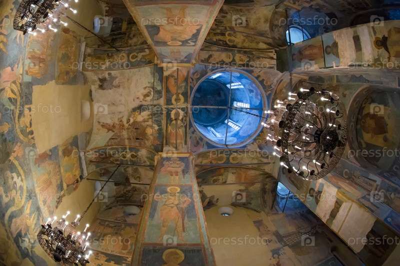 Детали интерьера Спасо-Преображенского собора с фресками. Спасо-Преображенский монастырь в Ярославле