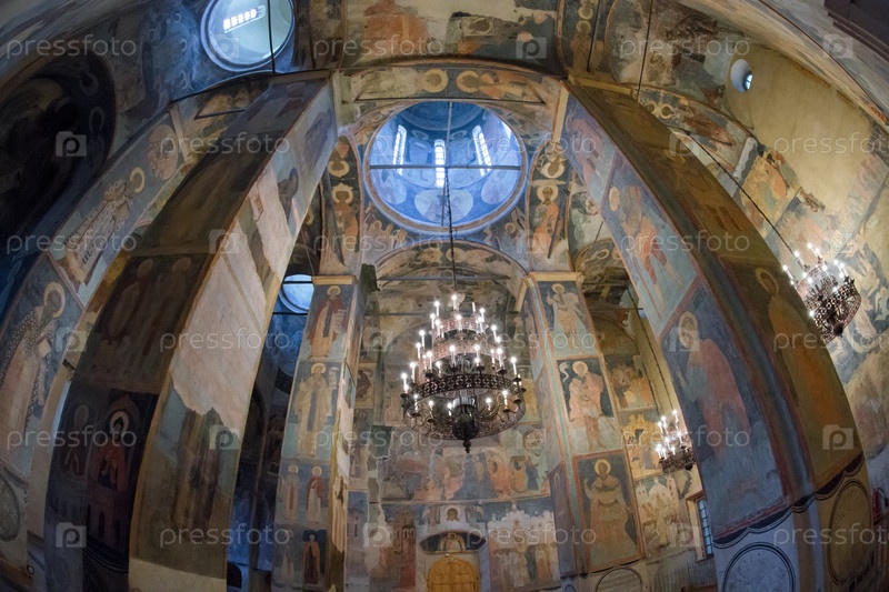 Детали интерьера Спасо-Преображенского собора с фресками. Спасо-Преображенский монастырь в Ярославле