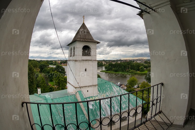 Ярославль. Башня церкви Введения и вид на реку Которосль с колокольни Спасо-Преображенского монастыря. Золотое кольцо. Россия