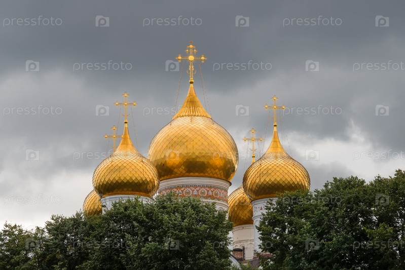 Золотые купола Успенского собора. Ярославль, Россия