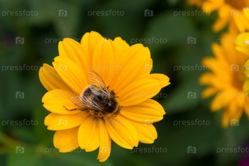Шмель собирает нектар с цветка в летний день