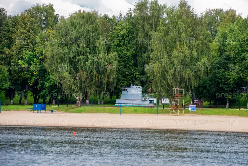 Ярославль, Россия - 14 августа 2020 г.: Памятник подводной лодке "Ярославский комсомолец" города Ярославля на берегу реки Волги