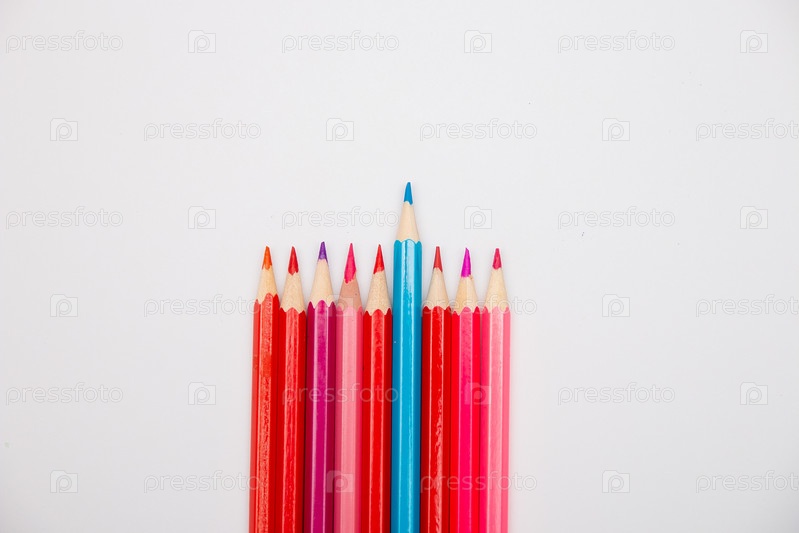 Цветные карандаши метафора гендерные отношения между мужчинами и женщинами мальчики и девочки место копия белый фон изоляция вид сверху розовый красный синий ЛГБТ любовь дружба