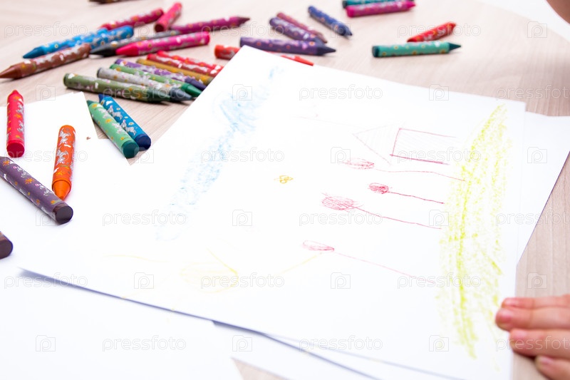 Детский рисунок на белой бумаге пейзажная концепция дома и семьи