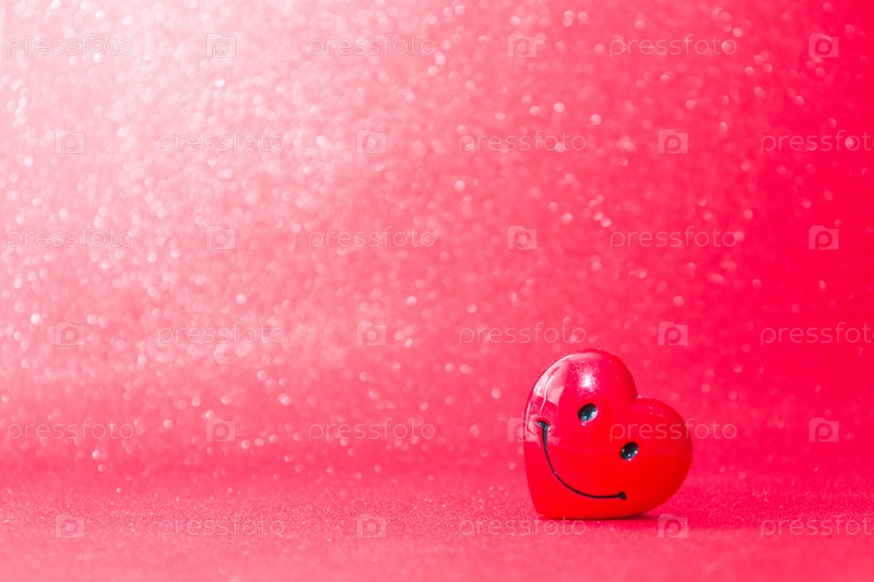 Улыбающееся красное сердце на красном блестящем фоне, пространство для копирования. Концепция дня святого валентина, место для вашего текста, концепция любви