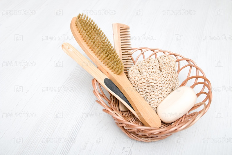 Экологические продукты для ухода за телом и массажа в корзине, концепция естественного спа-ухода