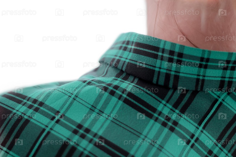 Деталь стойки-воротника со спины крупным планом на светлом фоне