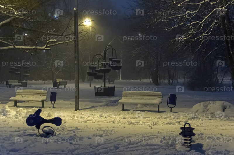 Туман поздним зимним вечером в спальном районе Москвы. Декабрь