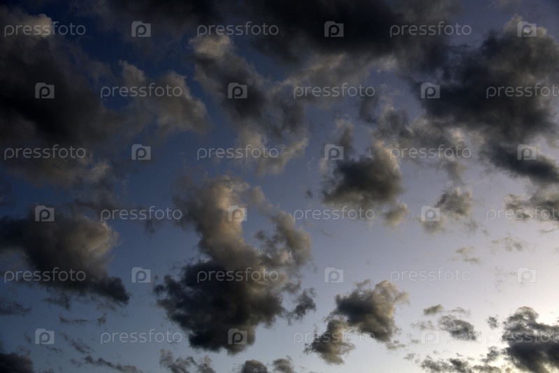 Серебристые облака в голубом небе вечером. Красивые голубые облака летним вечером