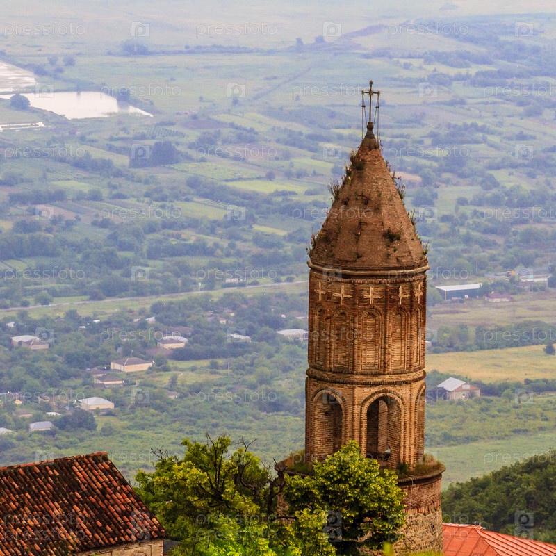 Вид на традиционную старую церковь в маленьком городке Сигнахи (Сигнаги) в Грузии