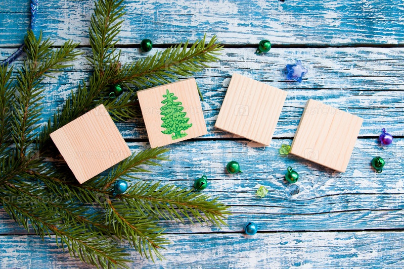 Деревянные квадраты для вашего свидания. новый год, праздничный фон, место для копирования, вид сверху, квадрат
