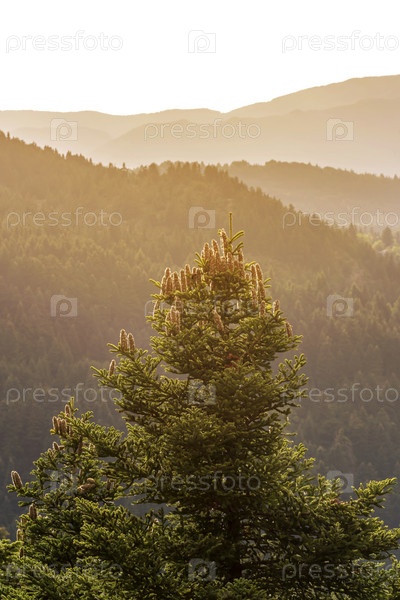 Одинокая ель в горах (район Цумерка, Греция, горы Пиндос)