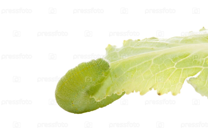 Зеленая гусеница на листе