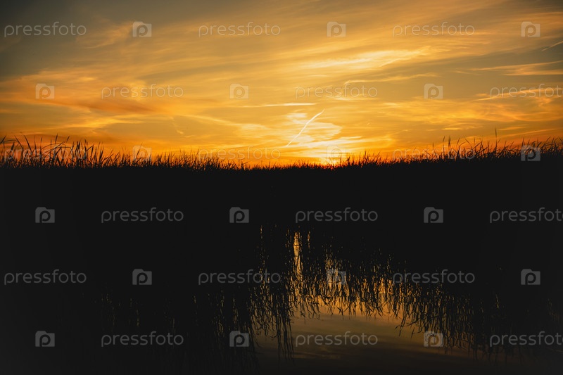 Закат в камышах на реке