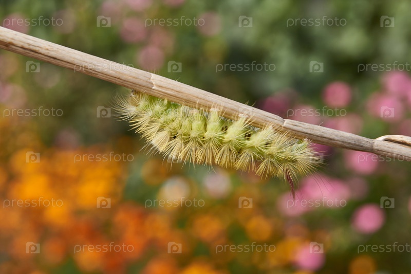 Гусеница ночной бабочки краснохвостые, или пушистая (лат. Calliteara pudibunda)