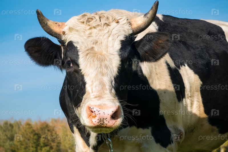 Портрет большого черно-белого быка