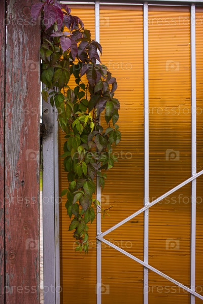 Parthenocissus quinquefolia, известный как Вирджиния лиана, Лиана Виктория, пятилистная плющ. Красный фон листьев красная деревянная стена