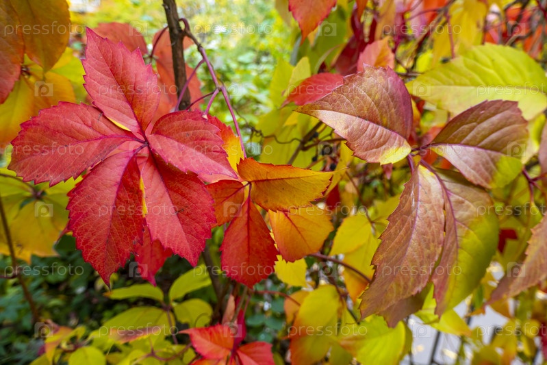 Parthenocissus quinquefolia, известный как Вирджиния лиана, Лиана Виктория, пятилистная плющ. Красный фон листьев красная деревянная стена