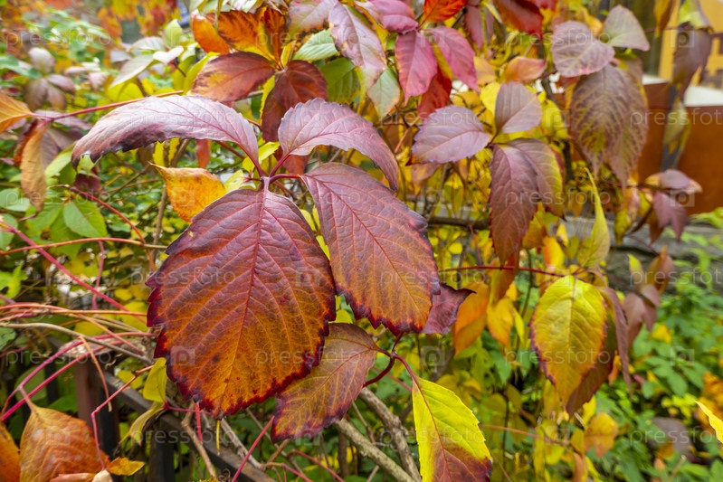 Parthenocissus quinquefolia, известный как Вирджиния лиана, Лиана Виктория, пятилистная плющ. Красный фон листьев красная деревянная стена