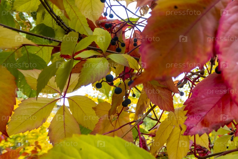 Parthenocissus quinquefolia, известный как Вирджиния лиана, Лиана Виктория, пятилистная плющ. Красный фон листьев красная деревянная стена