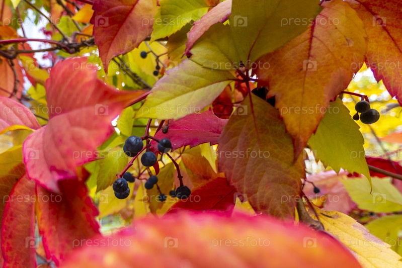 Parthenocissus quinquefolia, известный как Вирджиния лиана, Лиана Виктория, пятилистная плющ. Красный фон листьев красная деревянная стена