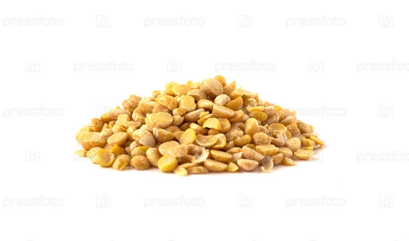Вид сбоку на кучу семян гороха. Сырая пища на белом фоне