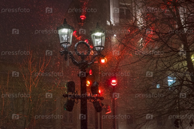 Фонарь в метель. Праздничная разноцветная подсветка в новогодние праздники