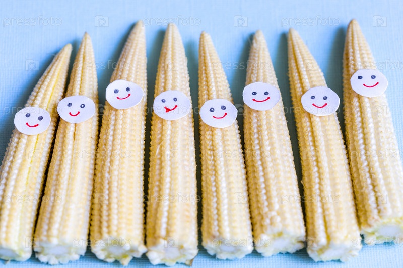 Детская кукуруза с забавными лицами. Здоровая органическая пища