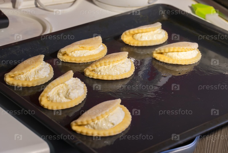 На противне печенье с творогом