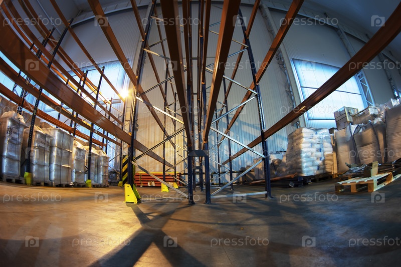 Складские помещения фабрики или мастерской с металлическими полками