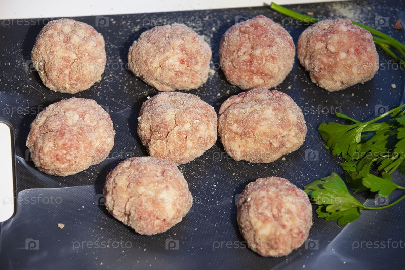 Приготовление мясных котлет. Полуфабрикаты фрикадельки на разделочной доске