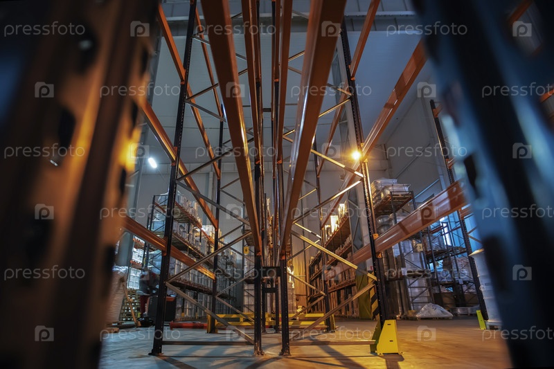 Складские помещения фабрики или мастерской с металлическими полками