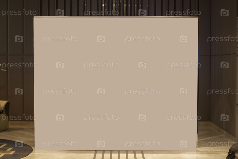 В вестибюле комнаты стоит пустой белый рекламный баннер