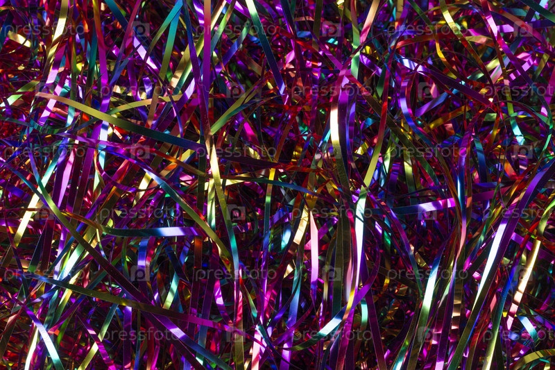 Праздничный фон. Много разноцветной мишуры крупным планом