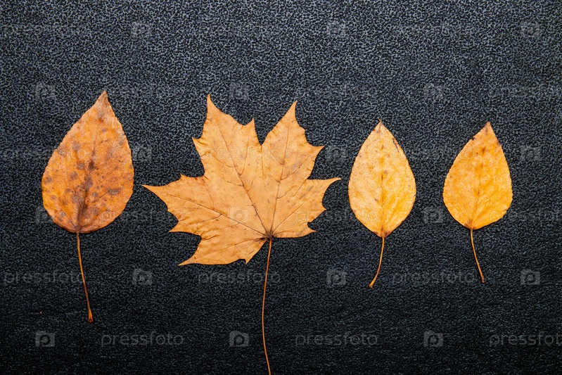 Листья на черном фоне изоляция вид сверху оранжевые коричневые желтые