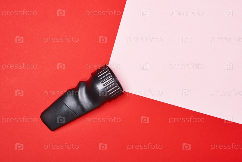 Фонарик на красном фоне с розовым лучом света, сделанный из бумаги