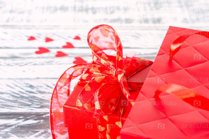 Праздничная открытка на День святого Валентина с красной подарочной коробкой и красной бумагой bg. Копируйте место для текста