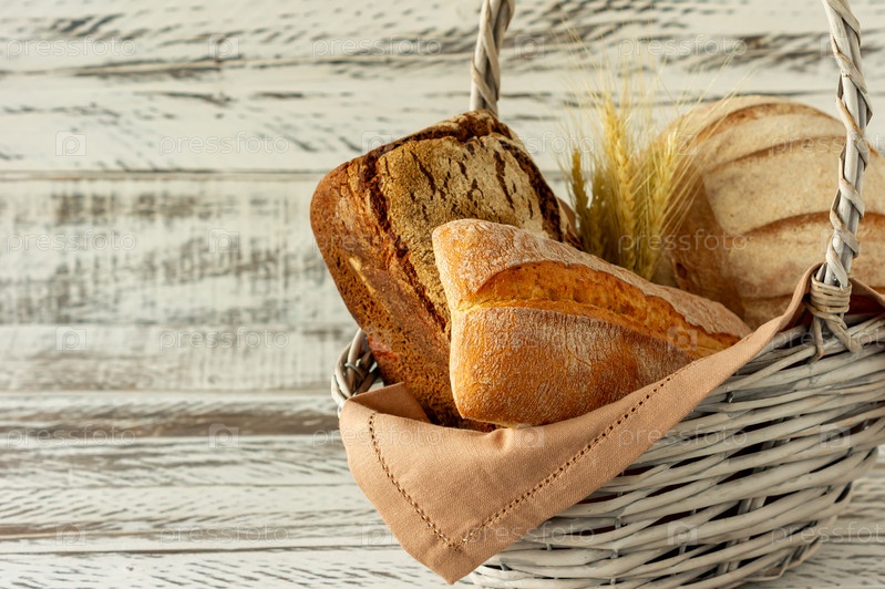 Группа разных видов хлеба на деревянном столе