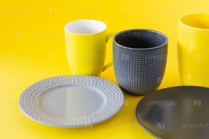 Набор посуды в модных цветах 2021 года - Ultimate серый и ярко-желтый Кухонная утварь