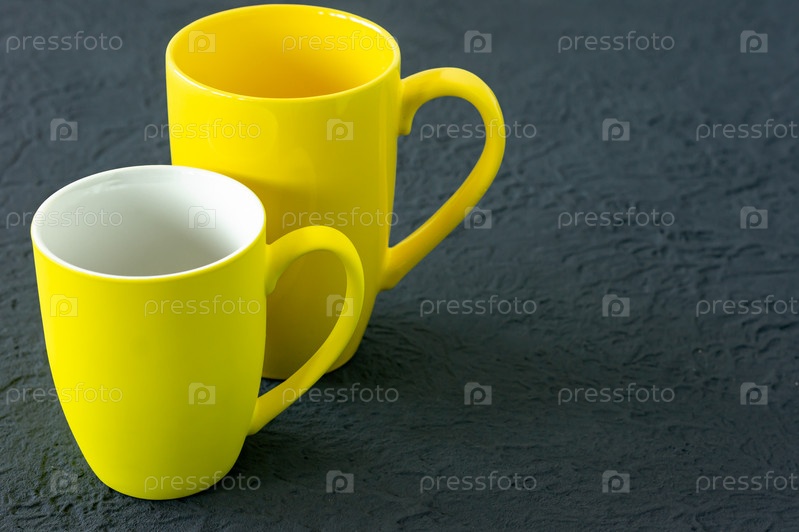 Две желтые чашки на сером фоне. Цвет 2021 года