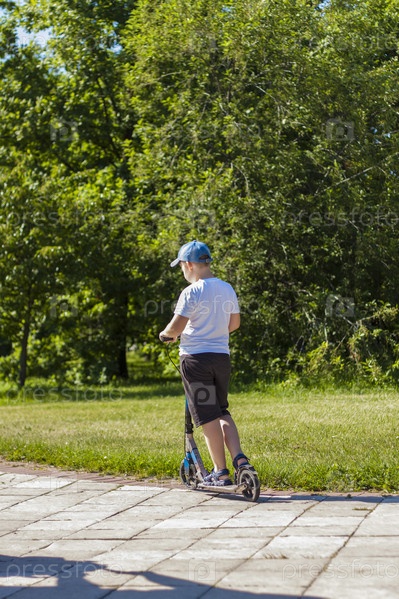 Школьник едет на самокате
