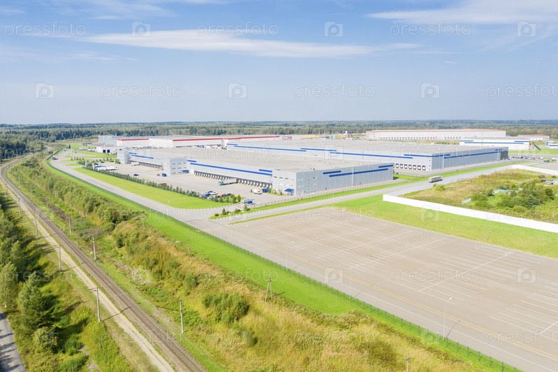 Вид с воздуха на складские здания бизнес-парка в сельской местности