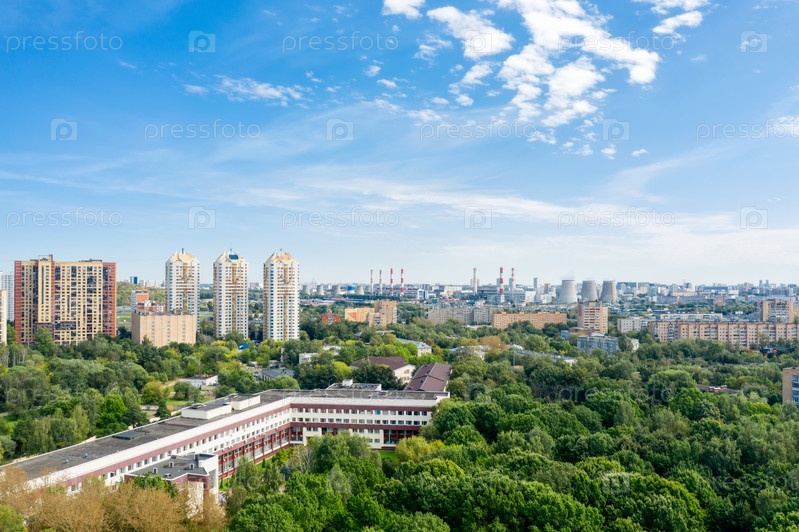 Вид с воздуха на жилые дома города Химки и окраины Москвы