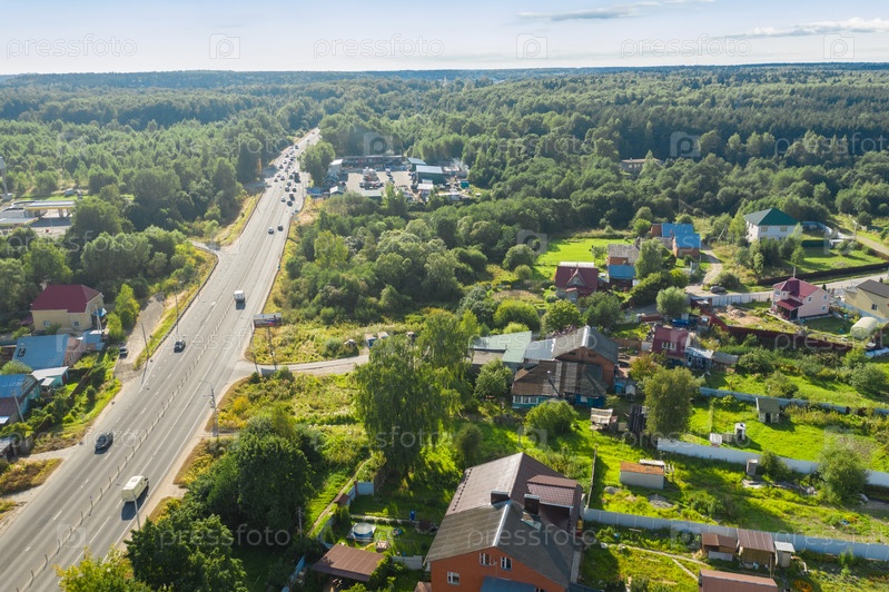 Вид сверху на Волоколамское шоссе, проходящее через подмосковный поселок