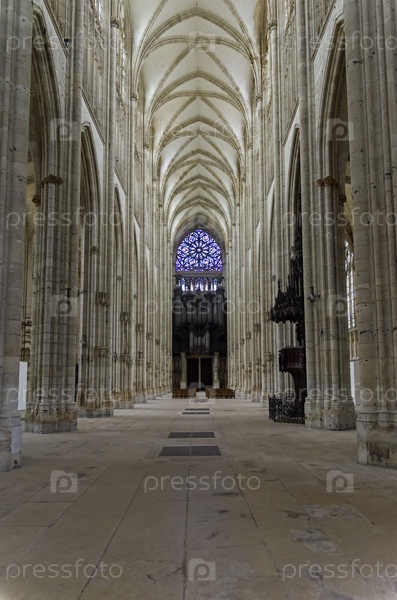 Интерьер католического храма. Собор аббатства Сент-Уэн, Руан, Франция