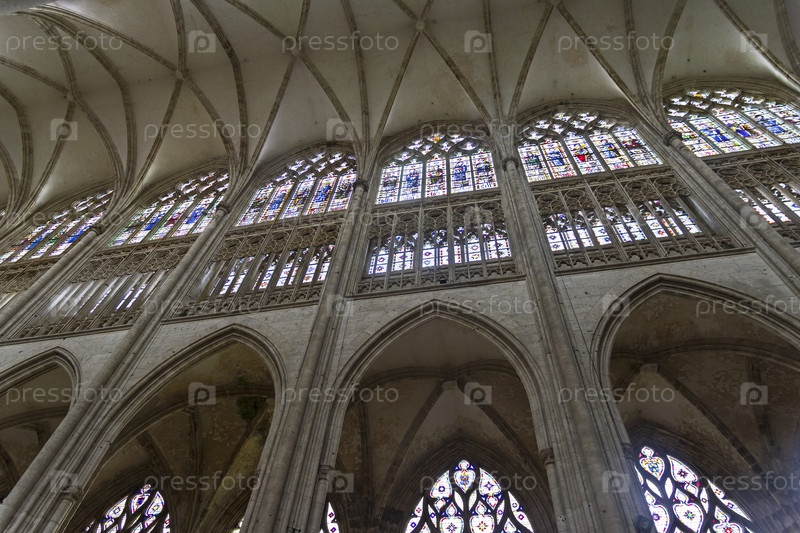Витражные окна в католическом храме. Собор аббатства Сент-Уэн, Руан, Франция